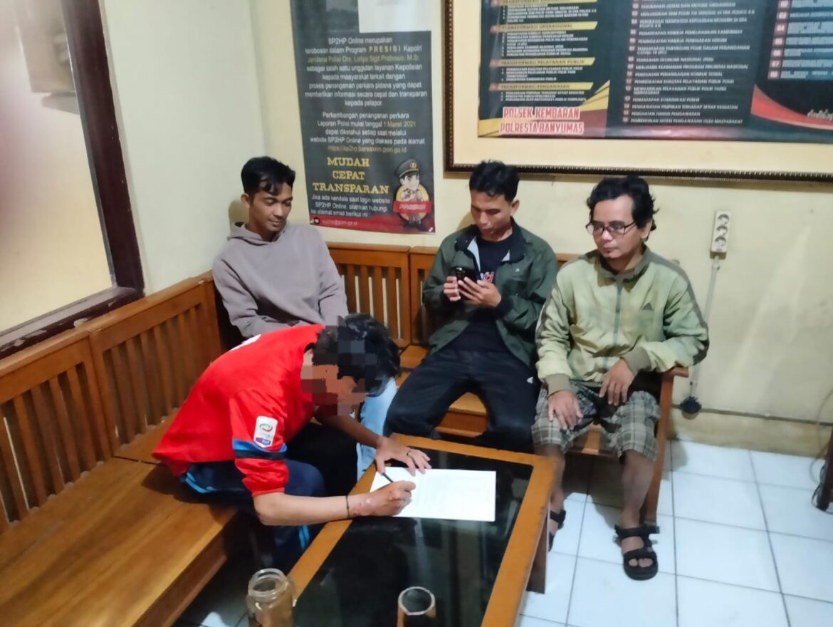 Petugas Polsek Kembaran yang menerima laporan segera mendatangi lokasi, mengamankan terduga pelaku, serta melakukan olah tempat kejadian perkara dan pemeriksaan saksi.