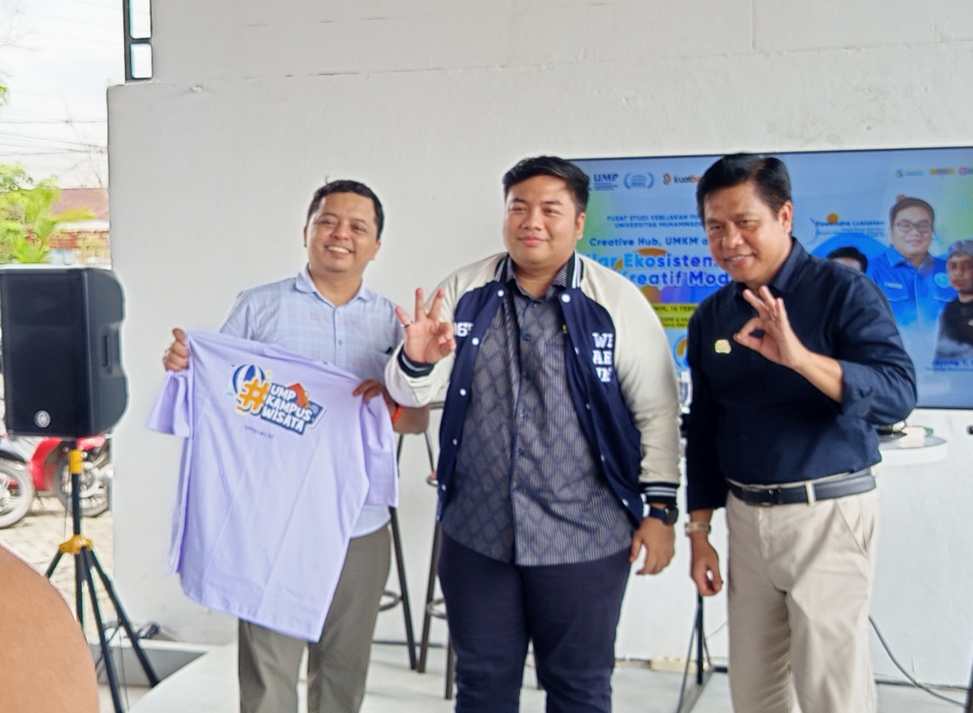 Diskusi ini menghadirkan Rektor UMP Jebul Suroso, Ketua Umum Gerakan Ekonomi Kreatif Nasional (Gekrafs) sekaligus anggota Komisi VI DPR RI Kawendra Lukistian, serta Pimpinan Redaksi Kuatbaca.com Jajang Y. Habib.