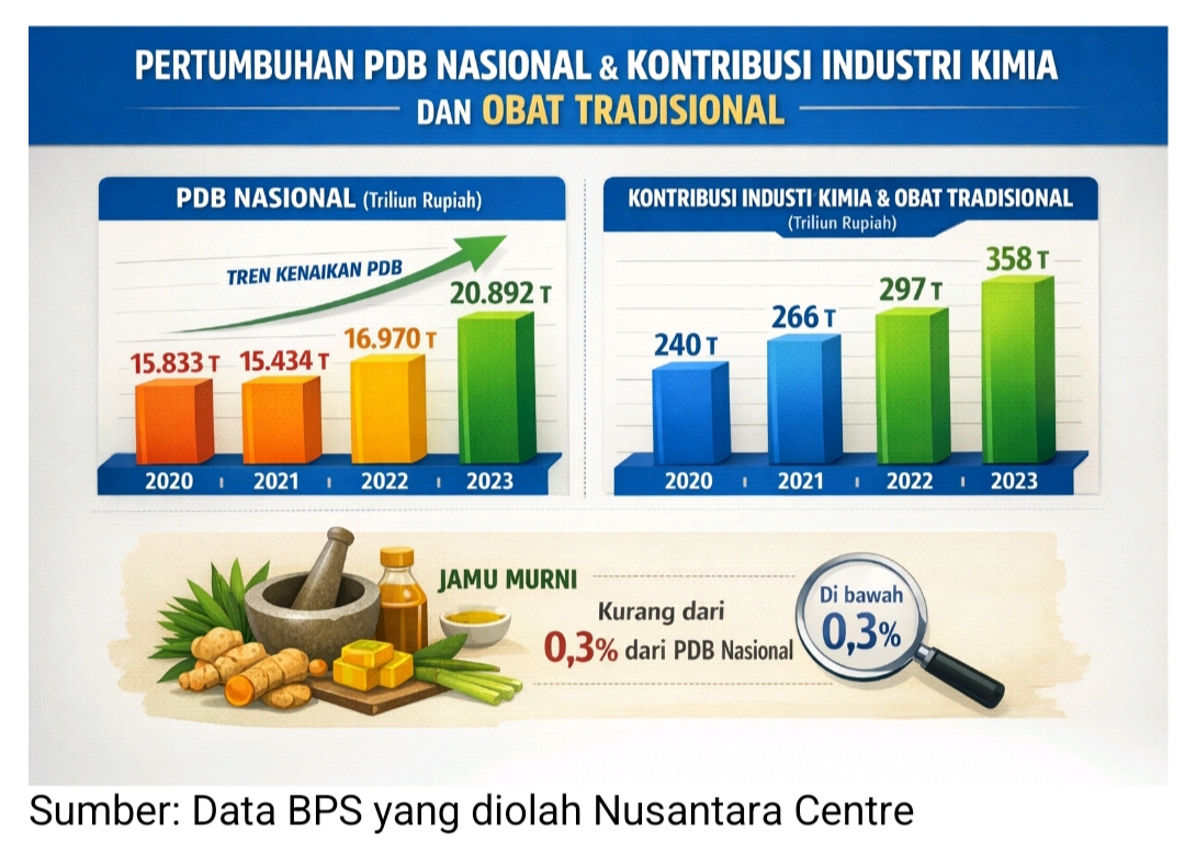 Perbandingan dengan industri obat kimia dan farmasi memperjelas ketimpangan struktural ini. Berdasarkan data BPS 2020–2024, industri kimia, farmasi, dan obat-obatan modern mencatat pertumbuhan tahunan di atas 8 persen, bahkan mendekati dua digit pada periode tertentu. Nilai pasar industri farmasi nasional diperkirakan mencapai lebih dari Rp170 triliun pada 2023–2024.