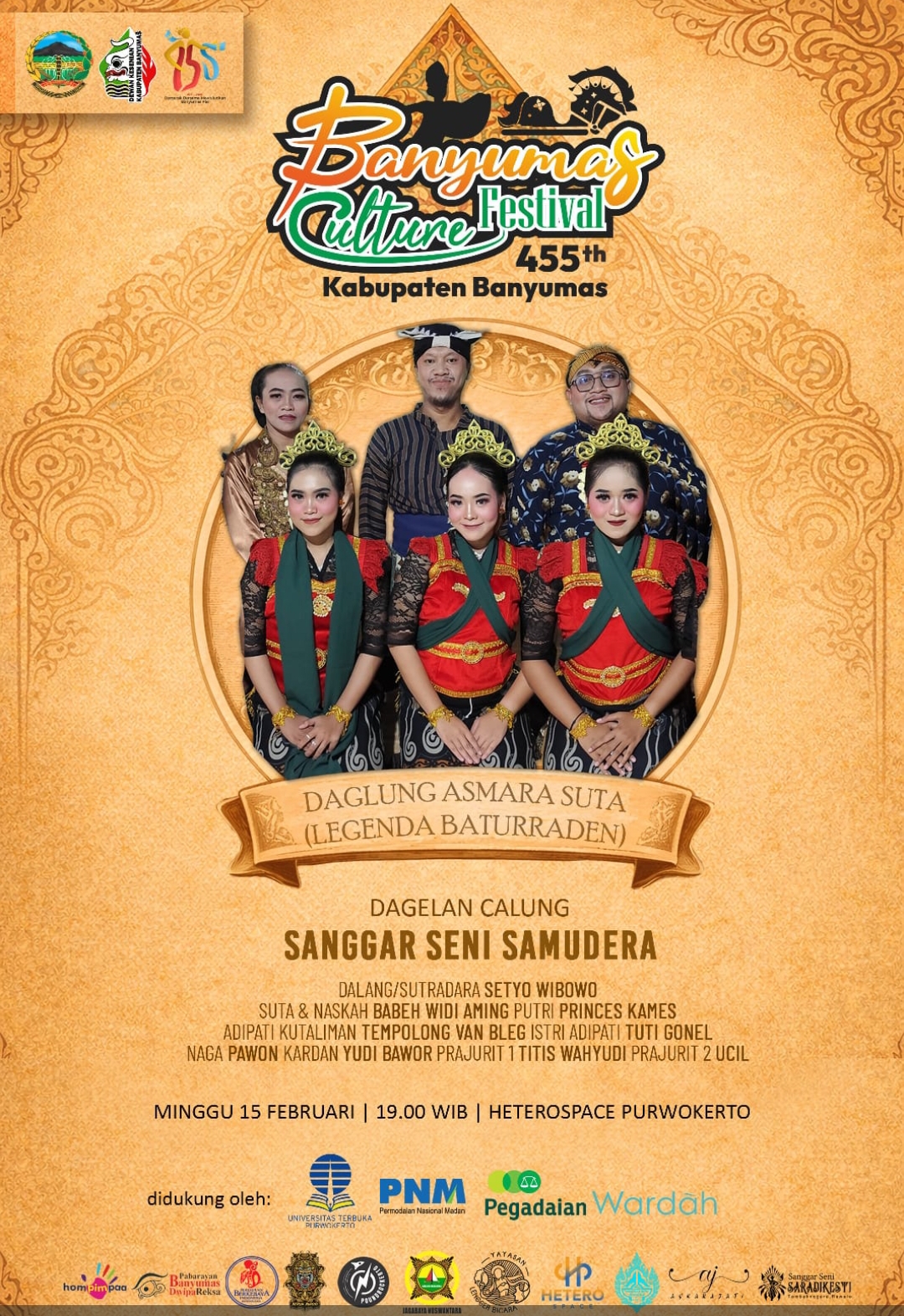 BANYUMAS – Pentas seni tradisi kembali meriah di Kabupaten Banyumas. Sanggar Seni Samudra akan menggelar Pentas Dagelan Asmara Suta malam ini, Minggu 15 Februari 2026 pukul 19.00 WIB di Hetero Space, dalam rangkaian Banyumas Culture Festival.