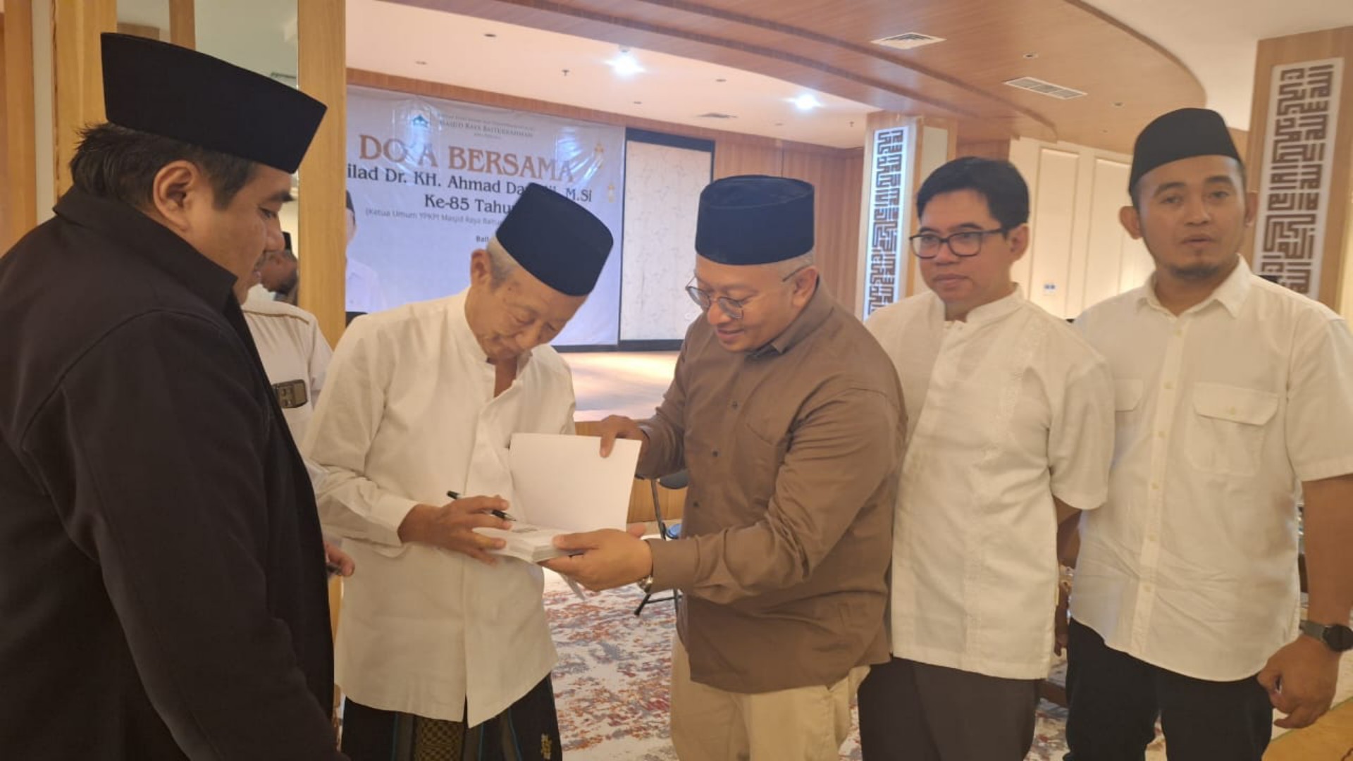 Semarang, purwokerto.info – Ketua Umum Majelis Ulama Indonesia (MUI) Jateng Dr KH Ahmad Darodji MSi, Minggu 31 Agustus 2025 lalu genap berusia 85 tahun. Karena sedang dalam suasana prihatin situasi demo dan kerusuhan di bebeberapa daerah, tasyakuran dilaksanakan secara sederhana di Ballroom Masjid Raya Baiturrahman, Jalan Pandanaran 126, Simpanglima Semarang.
