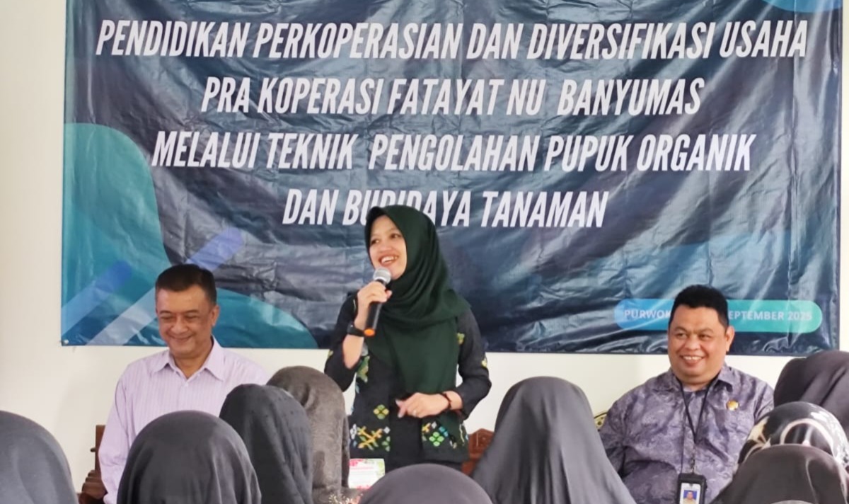 Banyumas, purwokerto.info – Pimpinan Cabang (PC) Fatayat Nahdlatul Ulama (NU) Banyumas menggelar kegiatan Pendidikan Perkoperasian dan Diversifikasi Usaha Pra Koperasi melalui pelatihan teknik pengolahan pupuk organik serta budidaya tanaman, pada Jumat (26/09/2025). Bertempat di Gedung Serbaguna PC Fatayat NU Banyumas, acara berlangsung meriah dengan antusiasme tinggi dari para kader Fatayat.